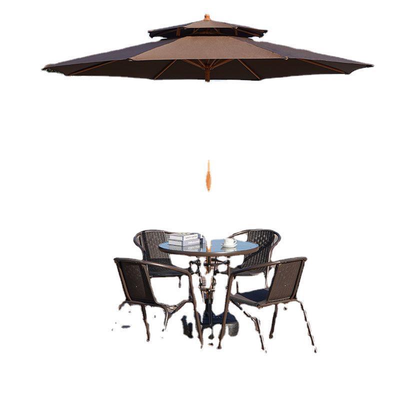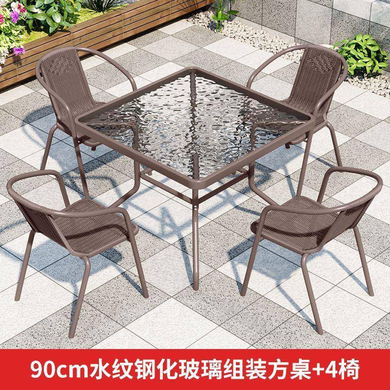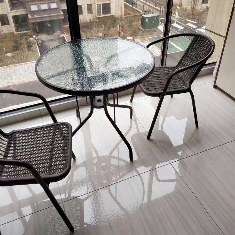 露天休闲桌椅户外庭院桌椅带伞藤椅阳台小茶几铁艺三件套室外椅子
