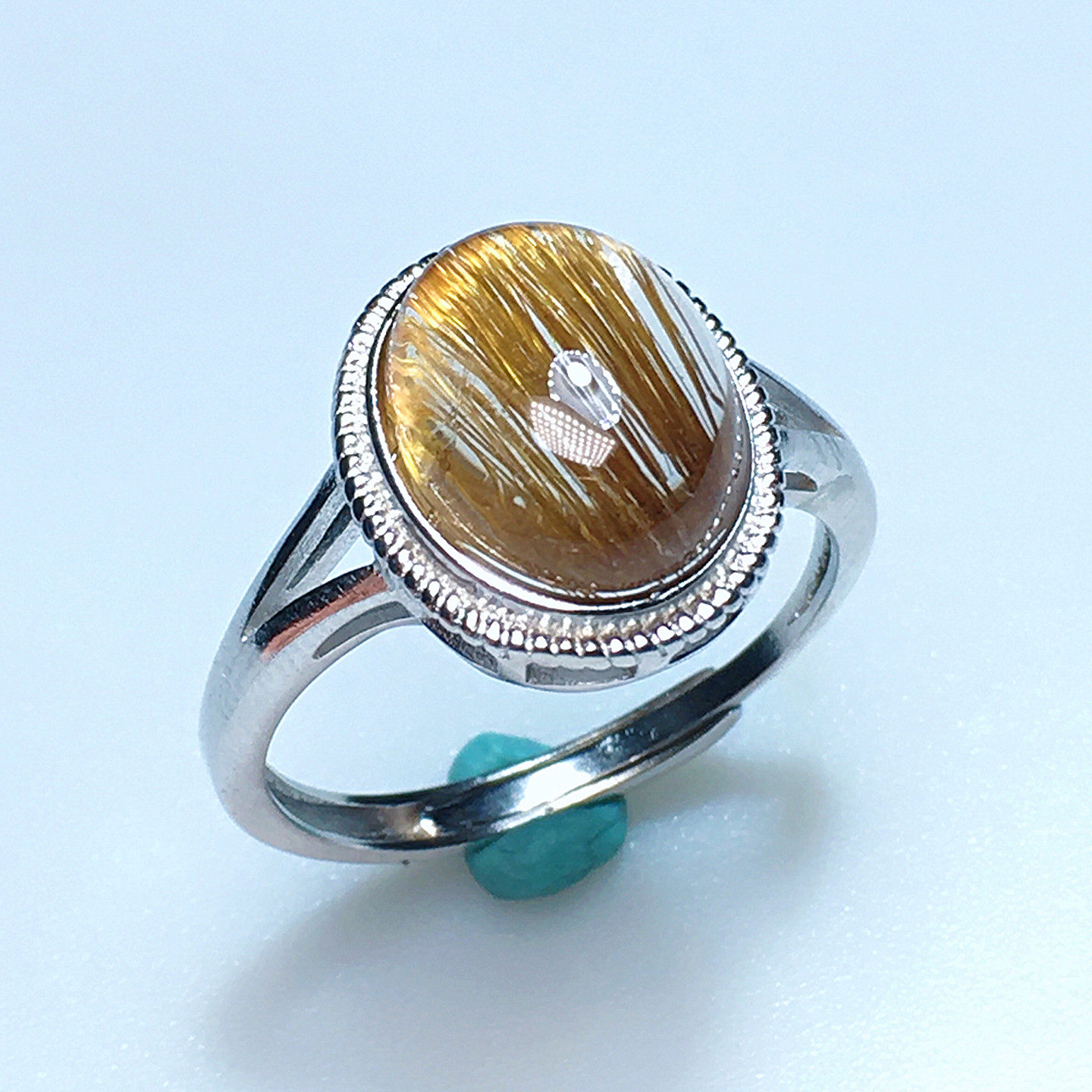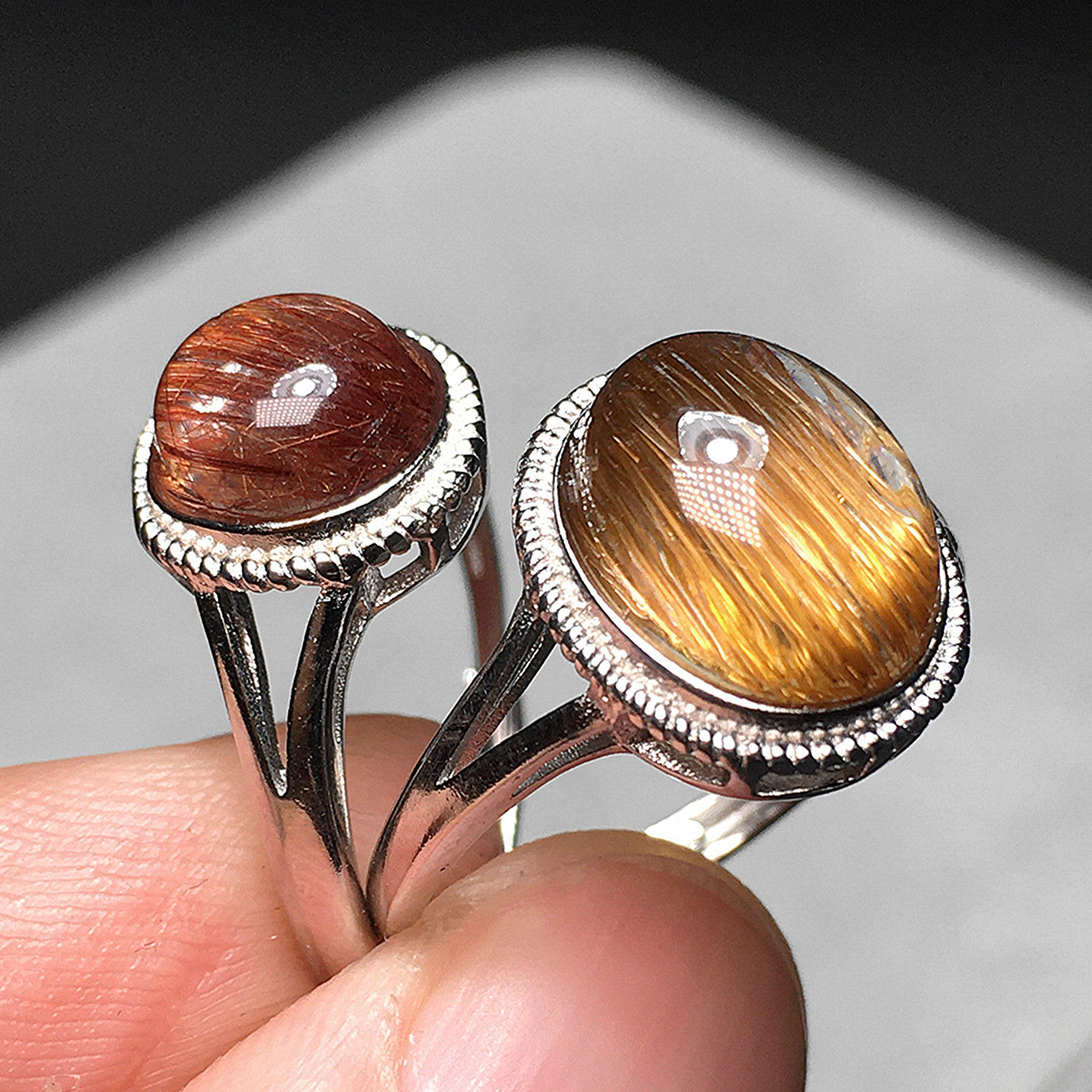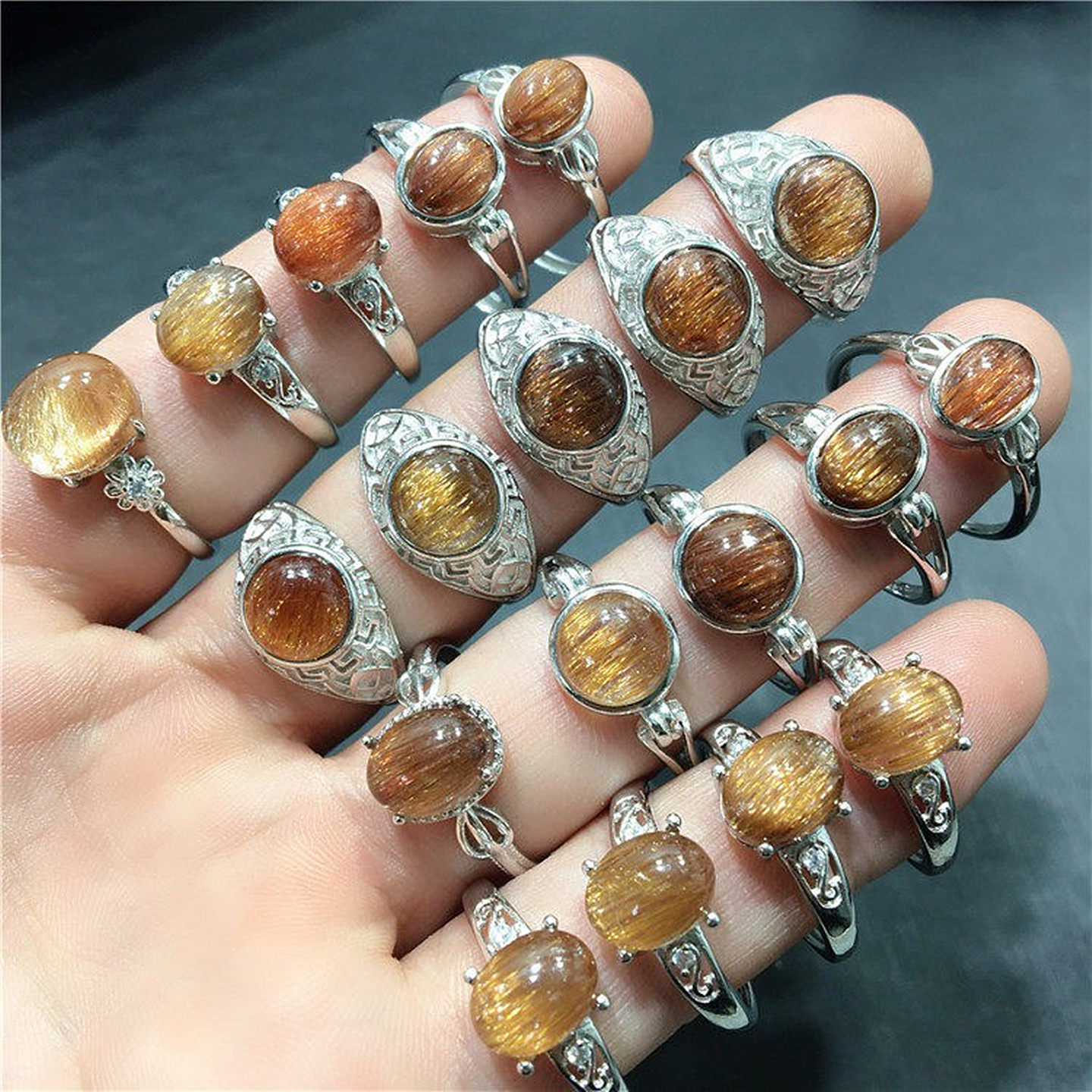天然金发晶戒指 红发晶 铜发晶戒指男女款925银顺发招财食指戒