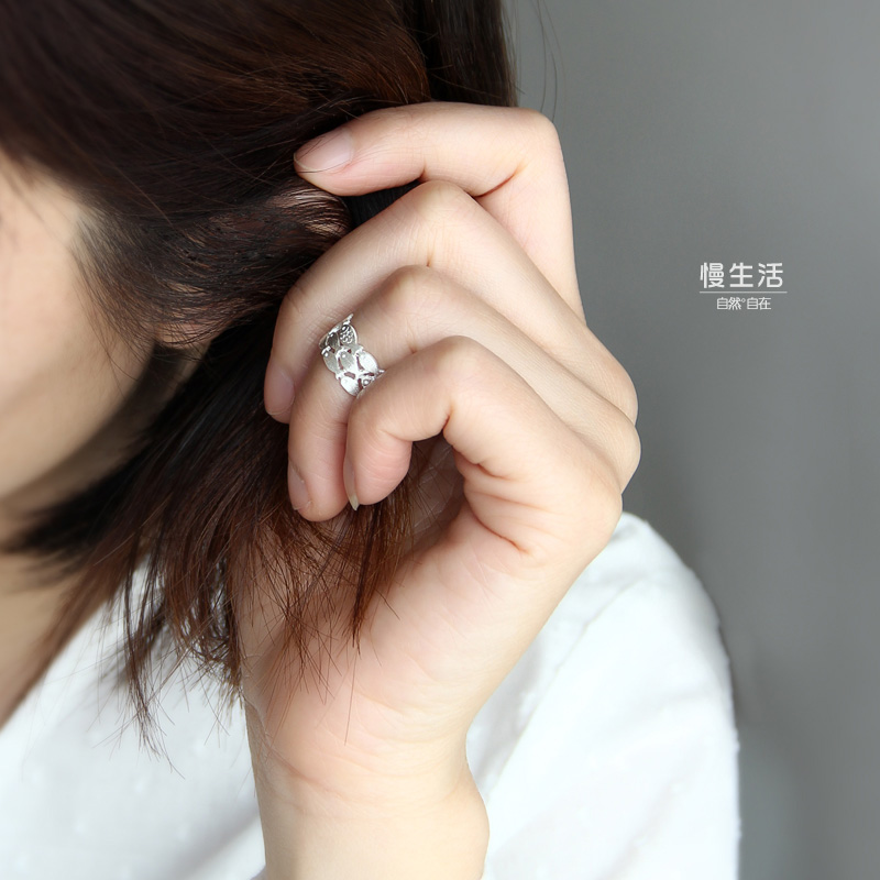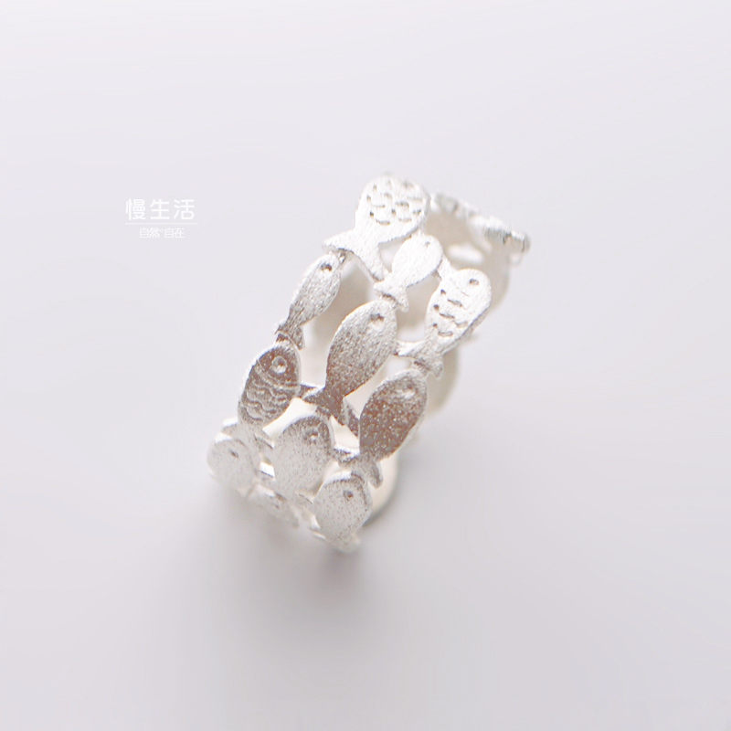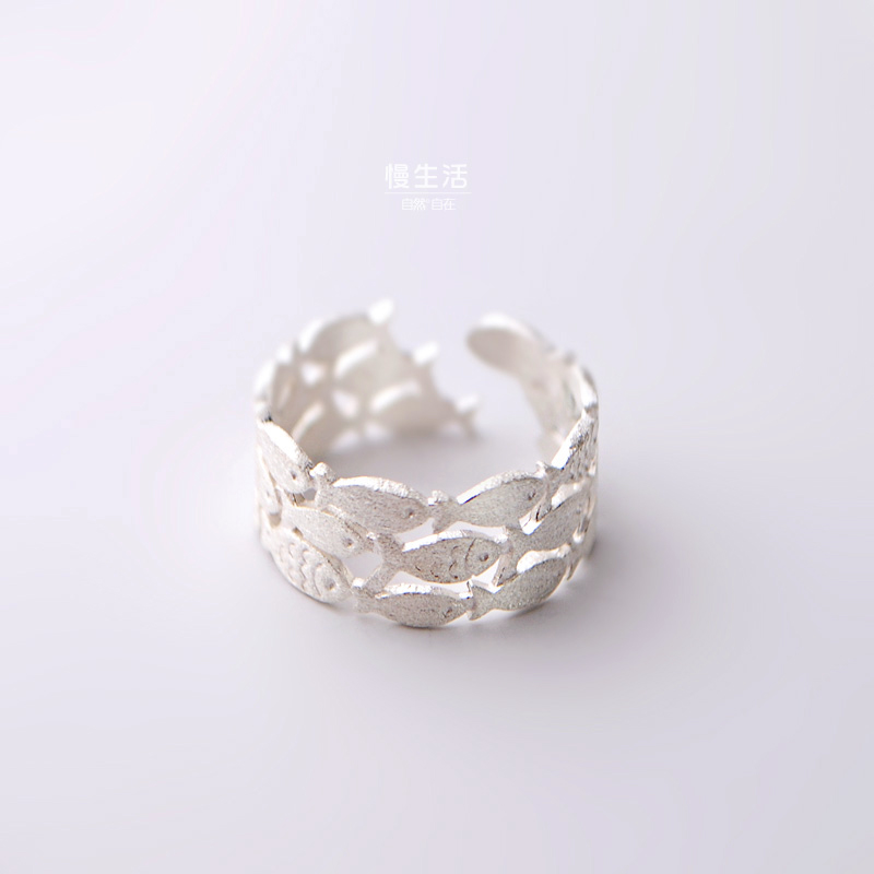 慢生活925纯银关节戒指女 韩国新款简约小鱼镂空食指关节开口指环