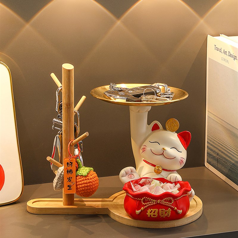 招财猫钥匙收纳玄关摆件入户门口鞋柜客厅家居装饰品乔迁新居礼品