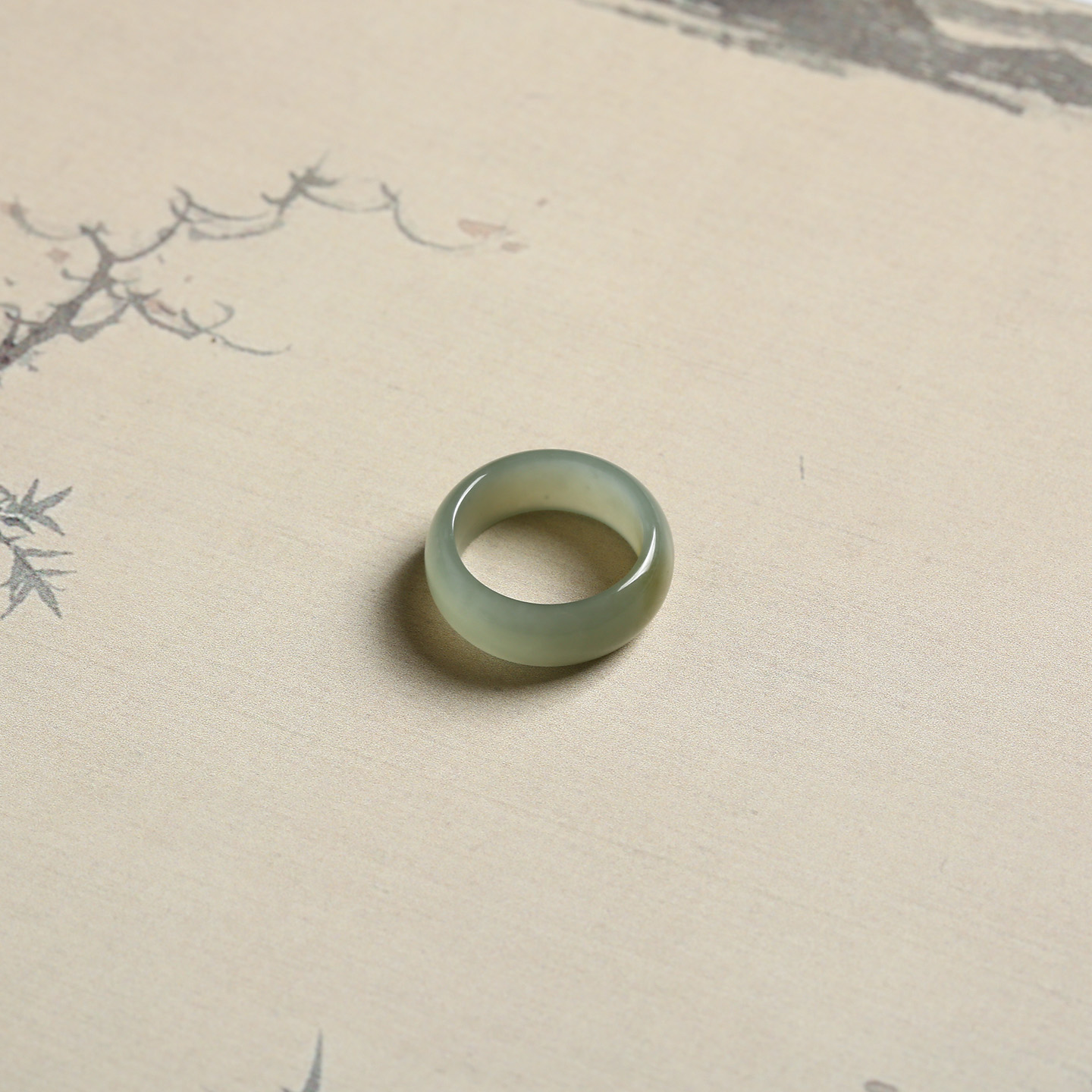 4号戒指 新疆和田玉糖料糖青玉小尺码圆弧素圈指环 尾戒 1128