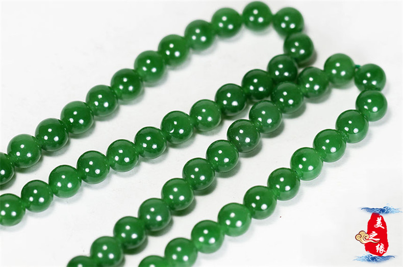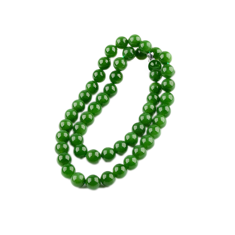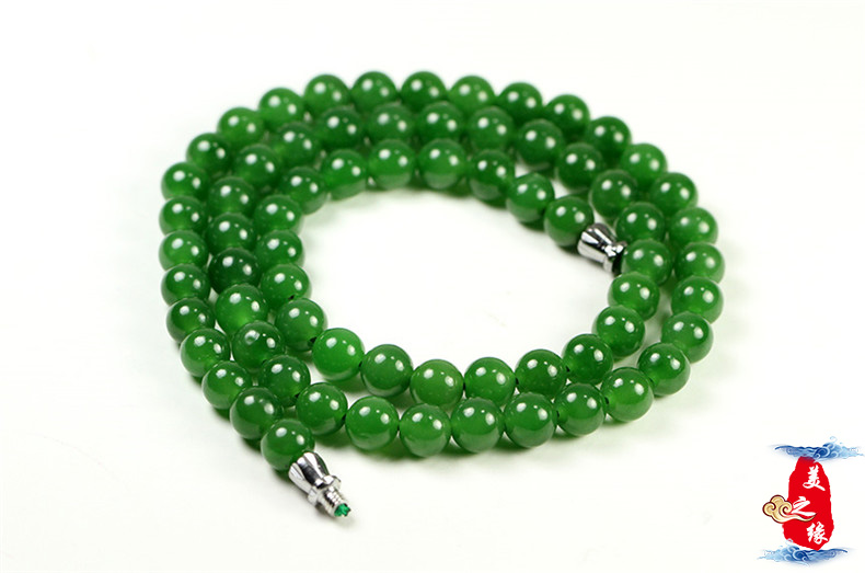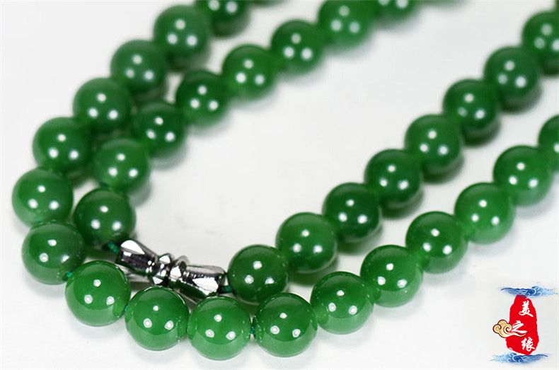 新疆青玉项链石英岩玉台湾青玉菠菜绿色玉石圆珠东陵玉项链送妈妈