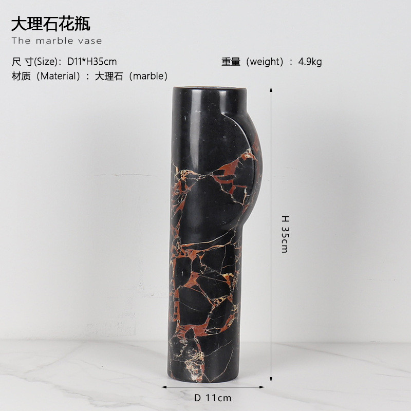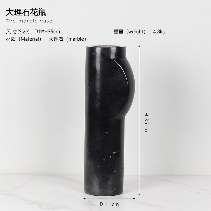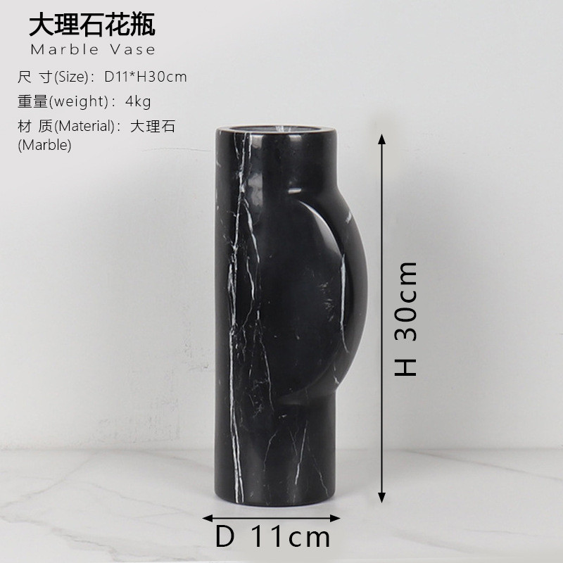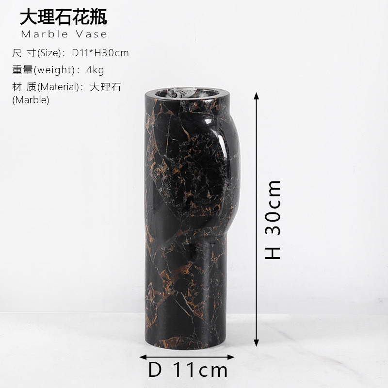 厂家创意轻奢花插花瓶天然大理石酒店工程家居软装饰品样板间花器
