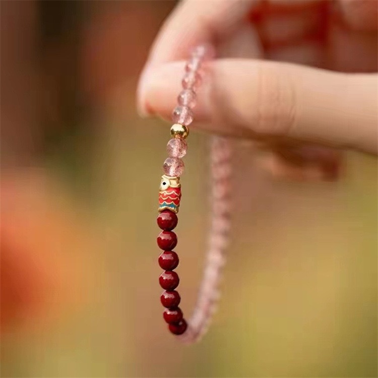 梦蝶草莓晶锦鲤朱砂紫金砂手串手链简约考研考公上岸男女闺蜜礼物