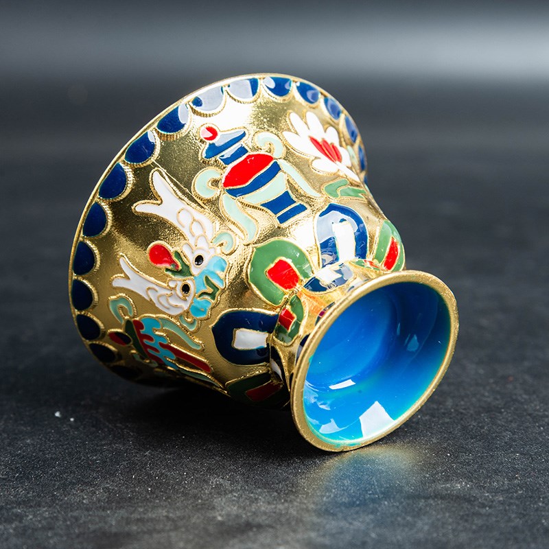 当前位置:首页>商品详情>藏式景泰蓝供杯彩绘鎏金供水碗家用八吉祥八供水杯雕刻Z供奉圣水