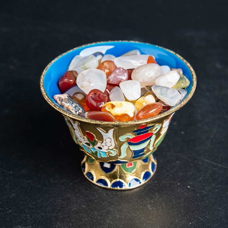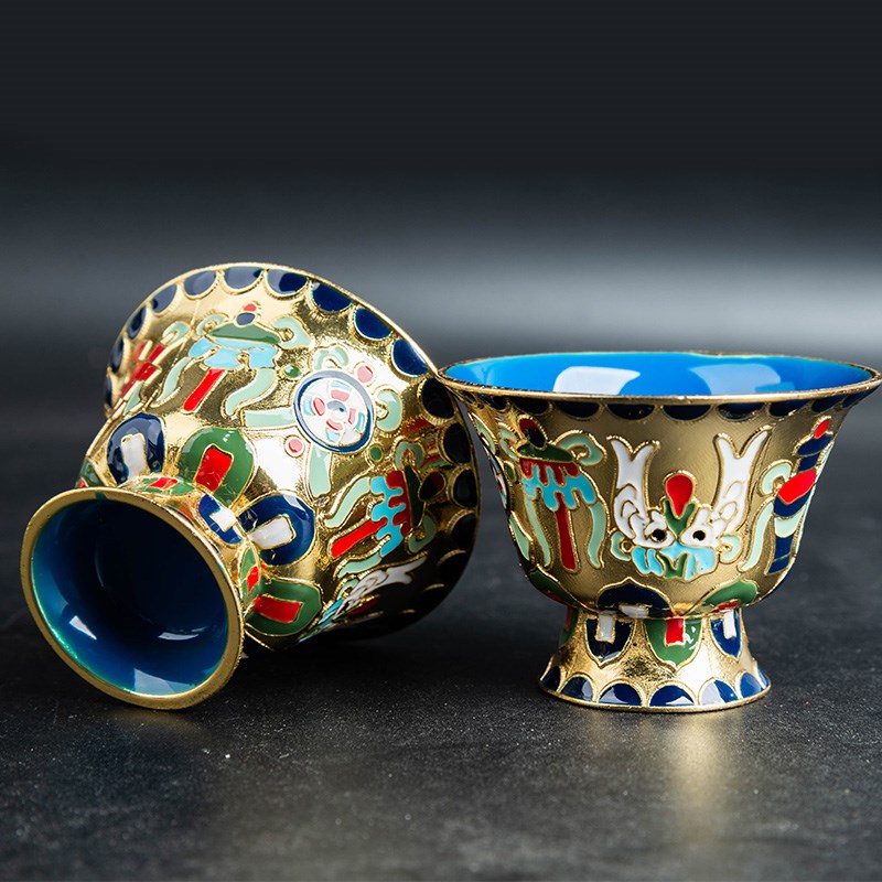 藏式景泰蓝供杯彩绘鎏金供水碗家用八吉祥八供水杯雕刻Z供奉圣水