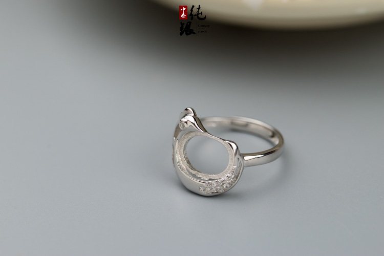 s925银十二生肖鸡戒指托空托琥珀蜜蜡绿松镶嵌银托8*10银饰diy