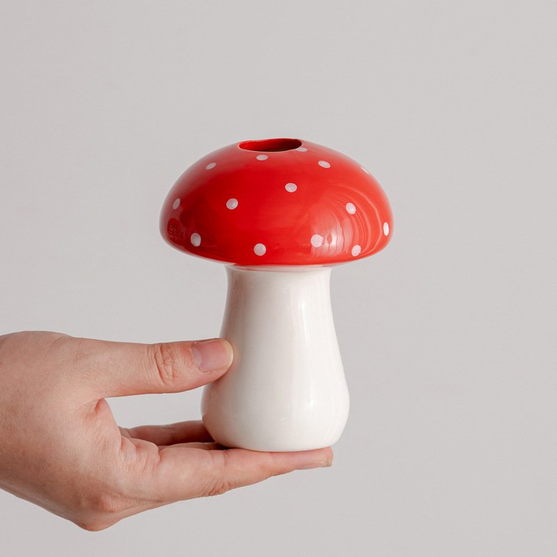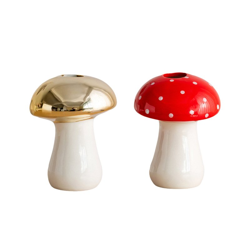 红色蘑菇陶瓷花瓶花器家居装饰品水培鲜花插花瓶桌面摆件工艺品