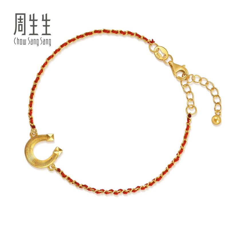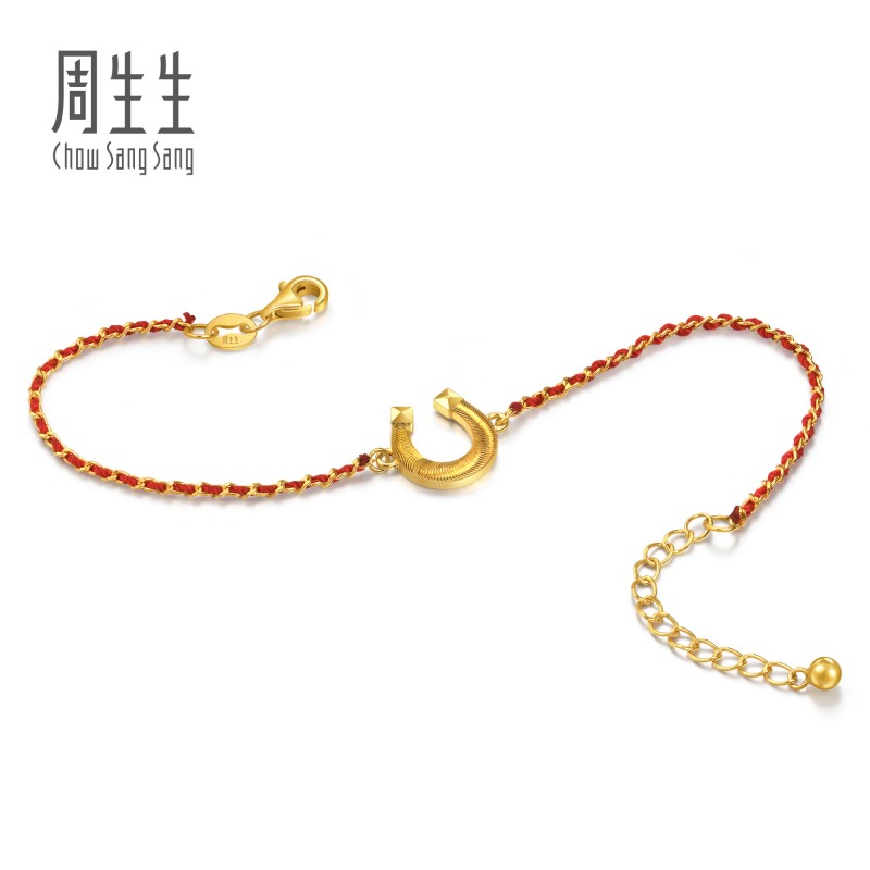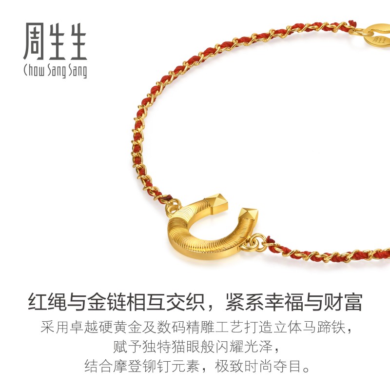周生生永系列足金幸运马蹄铁黄金手链马蹄扣红绳手链96140B计价