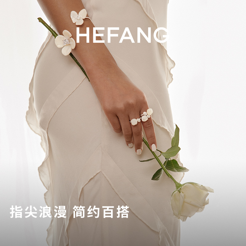 HEFANG何方珠宝白玫瑰戒指婚礼戒指戒圈叠戴优雅食指戒女生日礼物