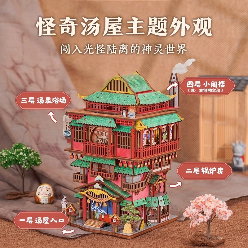 同趣文创DIY小屋汤泉物语创意木质拼装摆件感应开盖生日礼物女生