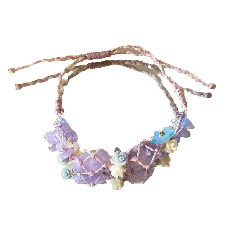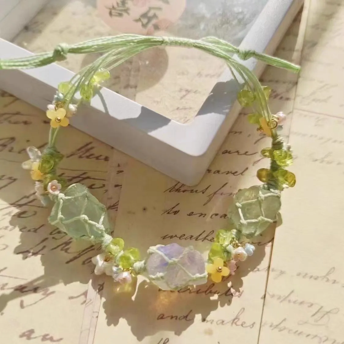 早春花环森系新款天然水晶手链手绳爆款纯手工编织网兜手链