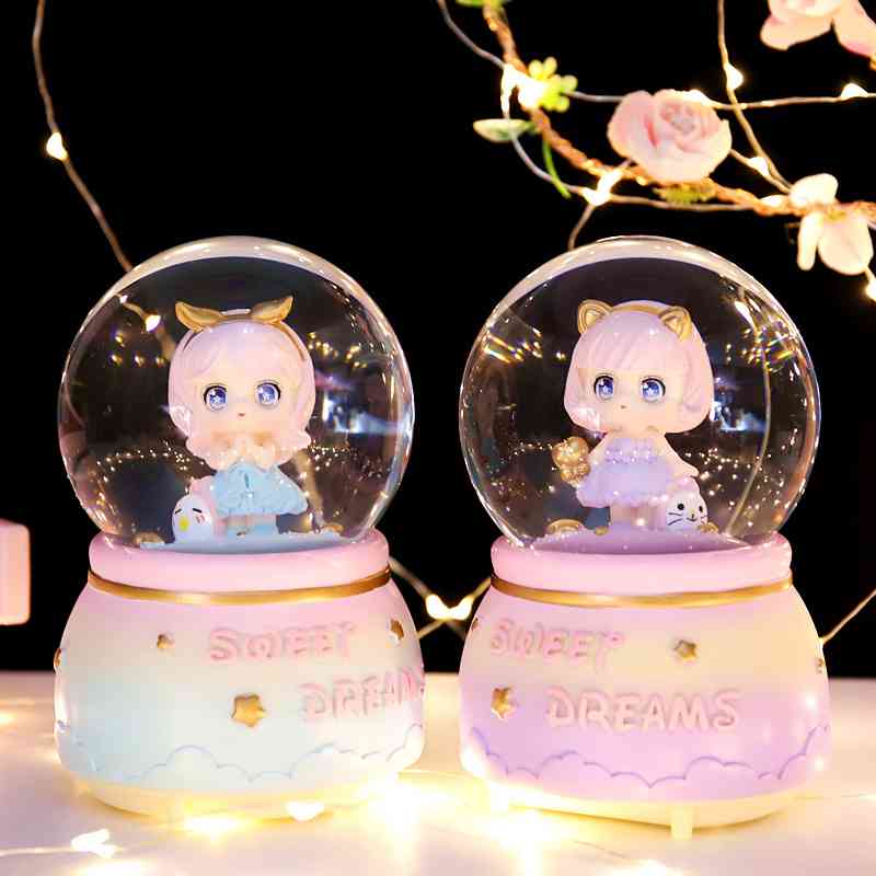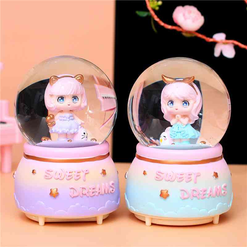 水晶球音乐盒发条飘雪少女心八音盒女少儿生日礼物小公主女孩子