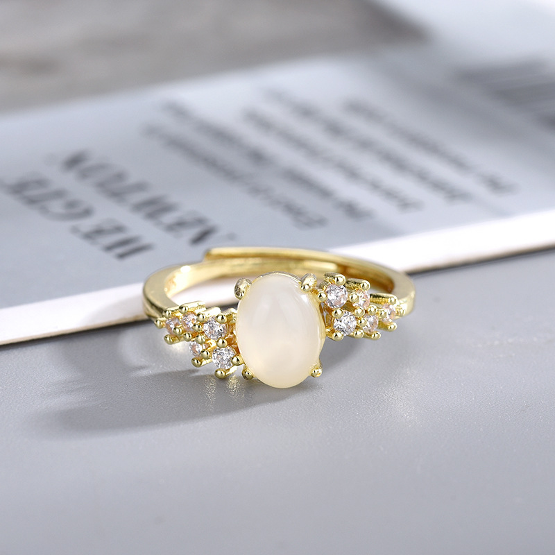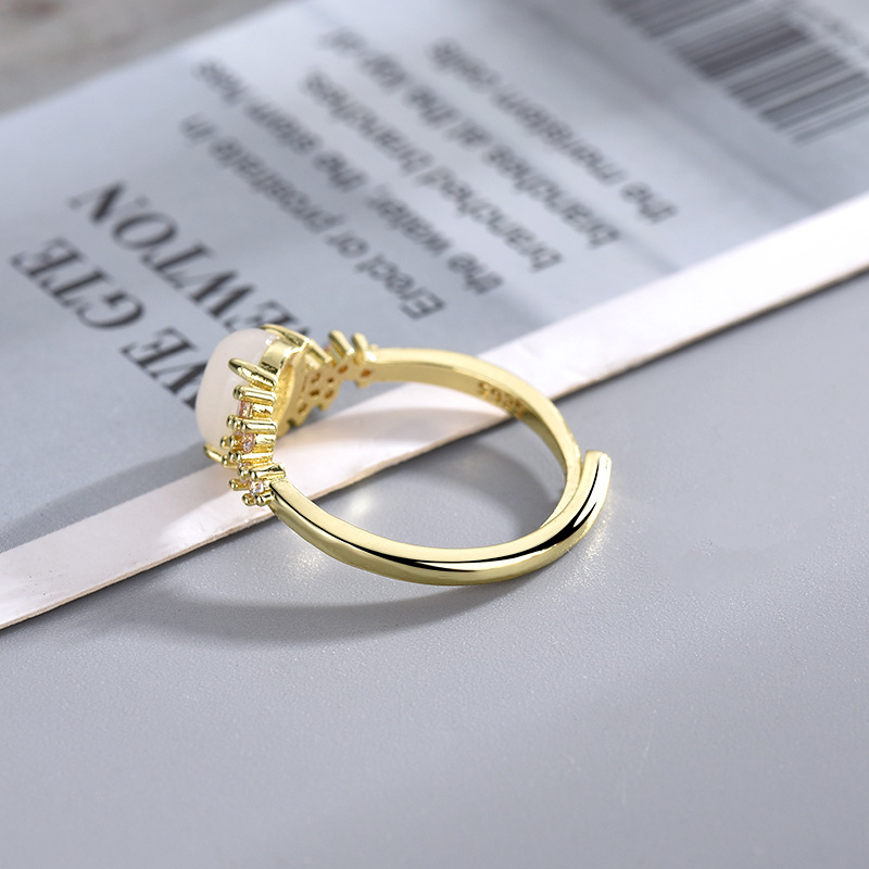 新款网红热卖白冰玉戒指锆石钻戒开口调节轻奢女高贵典雅