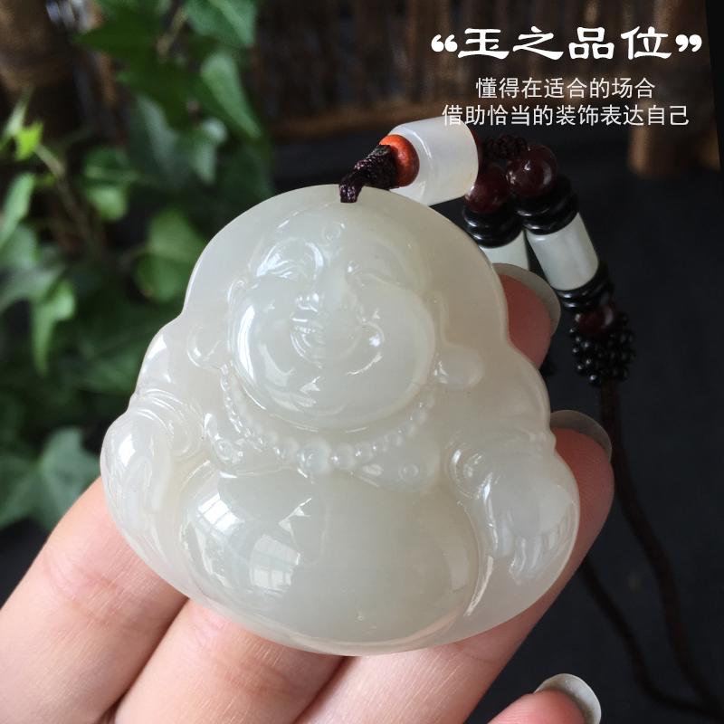 和田玉羊脂白玉弥勒佛吊坠女款天然玉石大肚佛笑佛公玉坠项链挂件