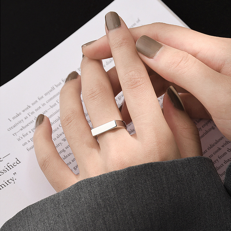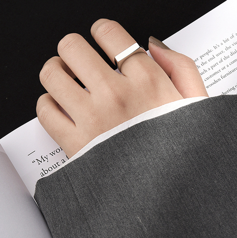 简约方形戒指女925银韩版ins小众设计食指环欧美简约复古开口戒潮