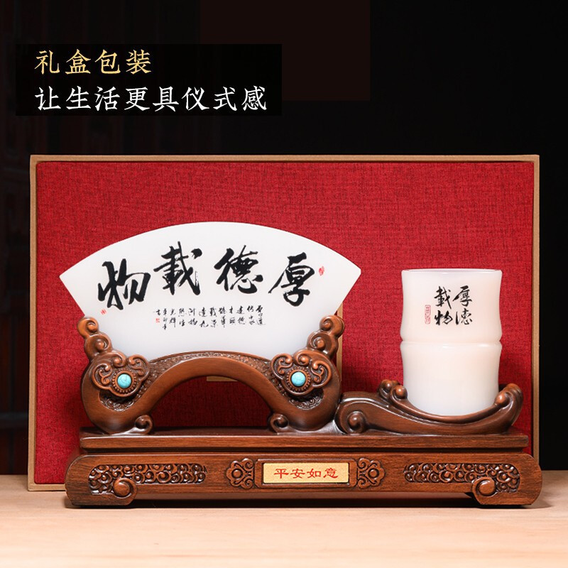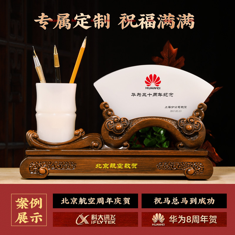 办公室摆件领导高档老板办公桌笔筒装饰工艺品商务定制开业礼物