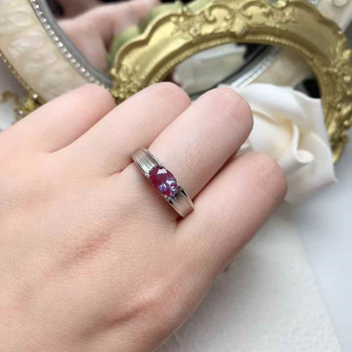 拉丝款男戒s925银镶嵌亚历山大变石活口男士戒指简单爪镶精致百搭