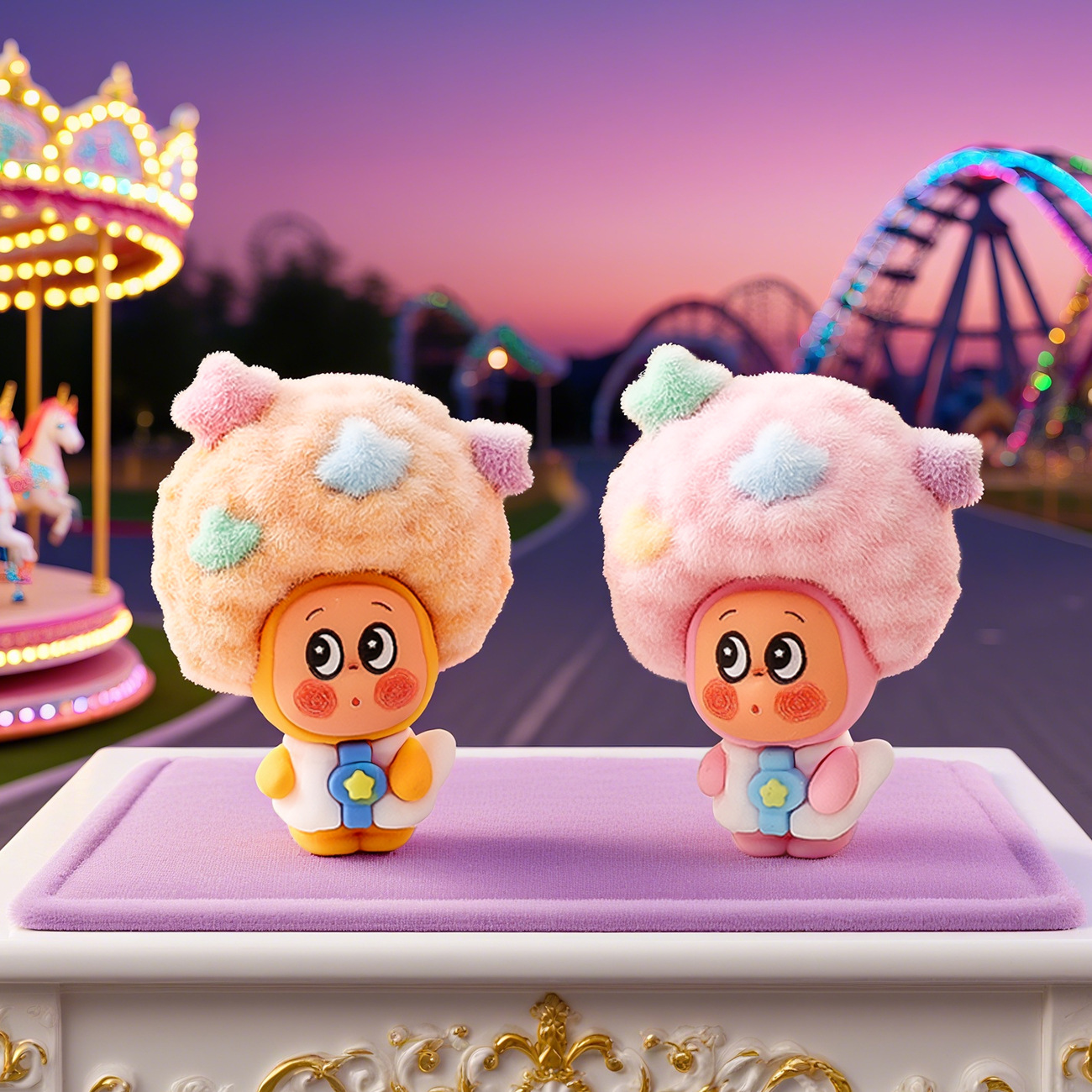 卡通爆炸头小人物萌粒植绒公仔潮玩盲盒七夕配件办公室桌面小摆件