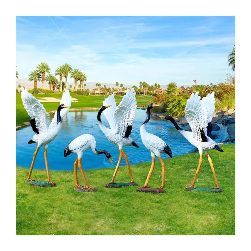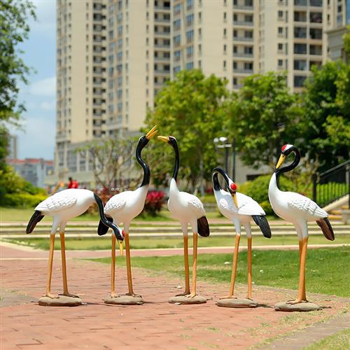 仿真仙鹤雕塑丹顶鹤摆件玻璃钢中式庭院花园假山水池园林景观装饰