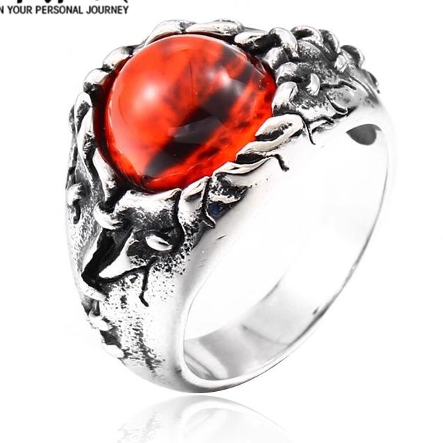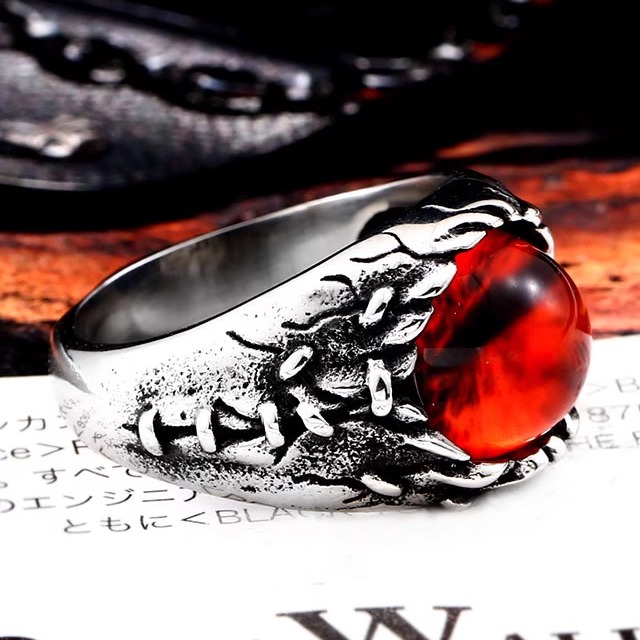 欧美复古恶魔之眼红宝石朋克风钛钢戒指男士个性高级感复古潮饰品