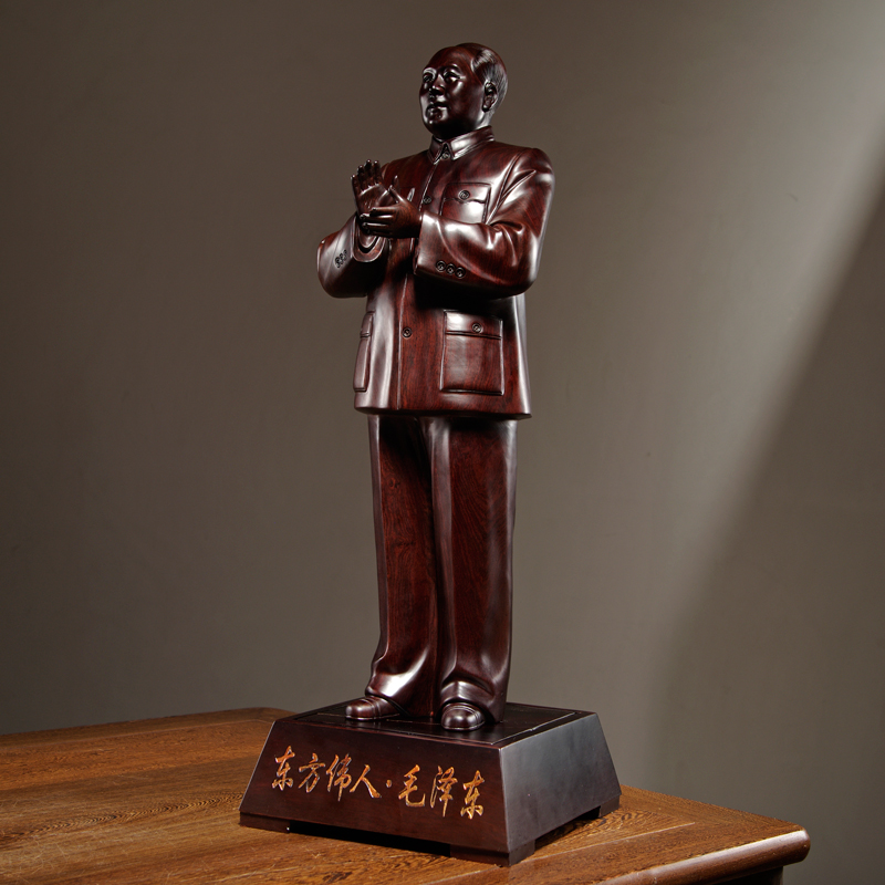 黑檀木雕毛泽东毛主席像摆件实木鼓掌站像家居客厅办公装饰工艺品