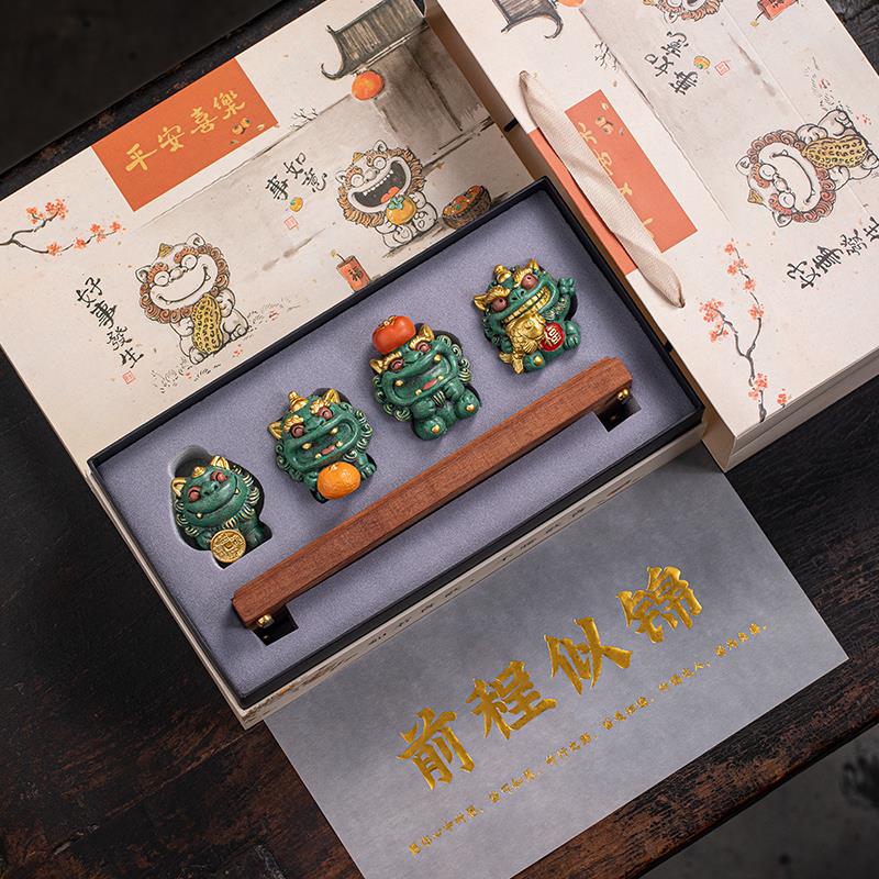 中式风狮爷家居客厅办公室桌面摆件创意小狮子前程似锦可爱礼盒装