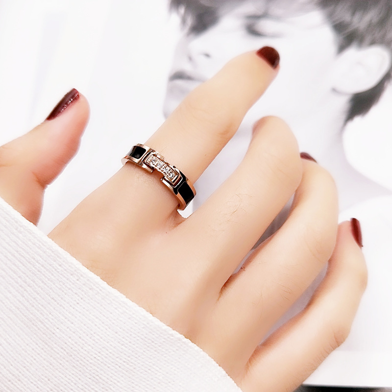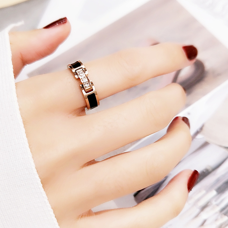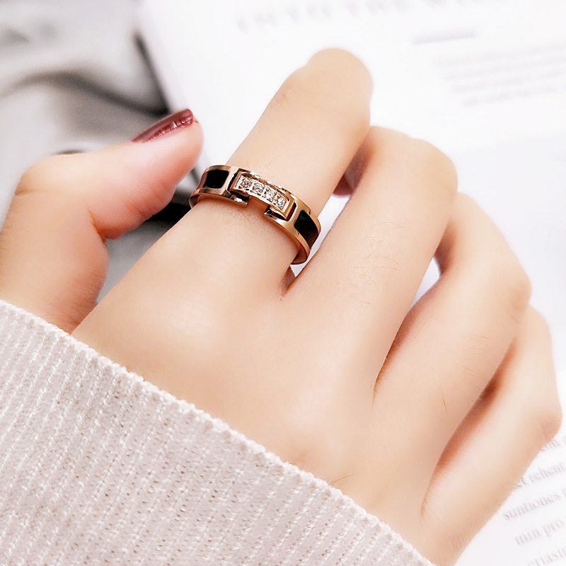欧美风网红个性日韩国黑色微钻戒指女款食指环戒子潮人钛钢装饰品