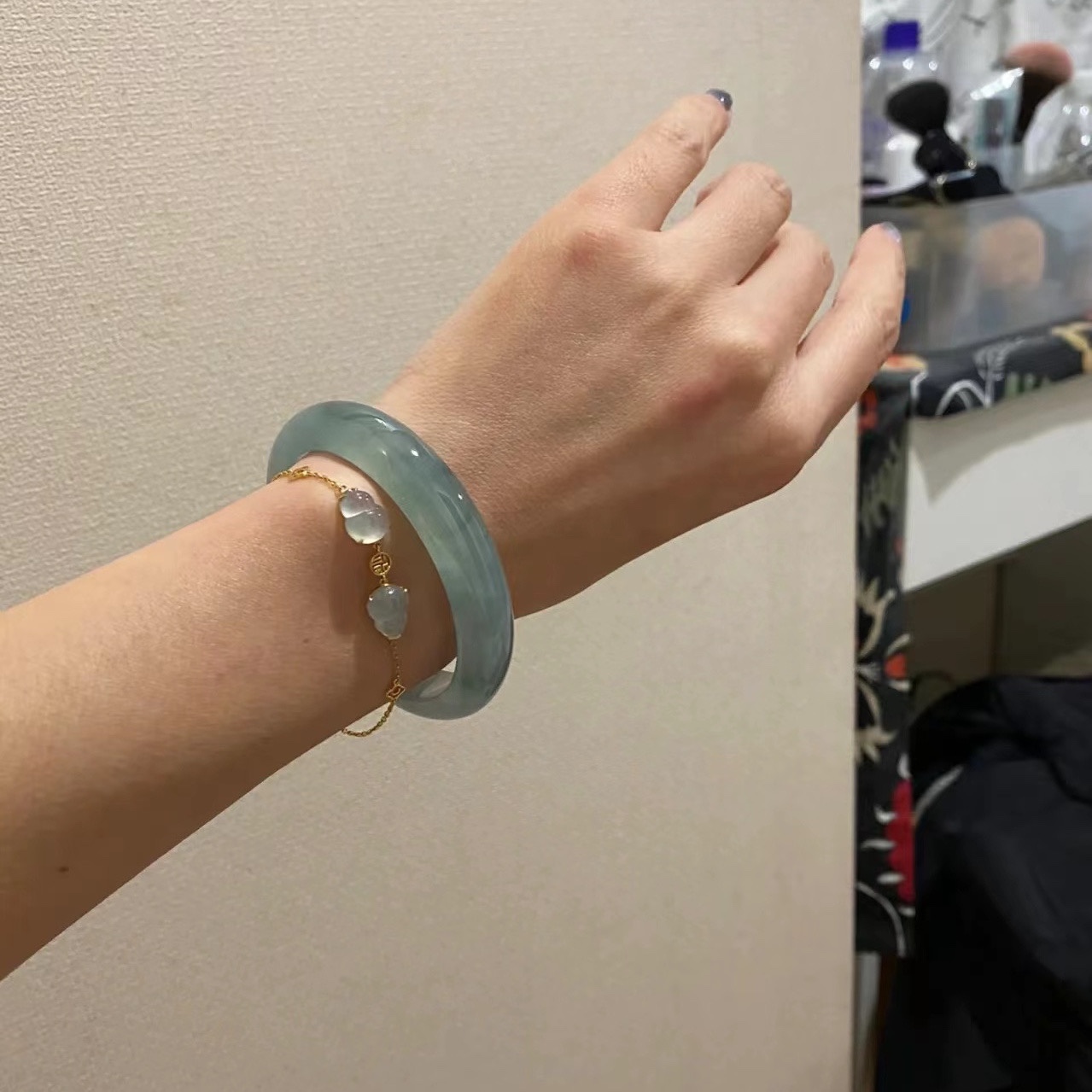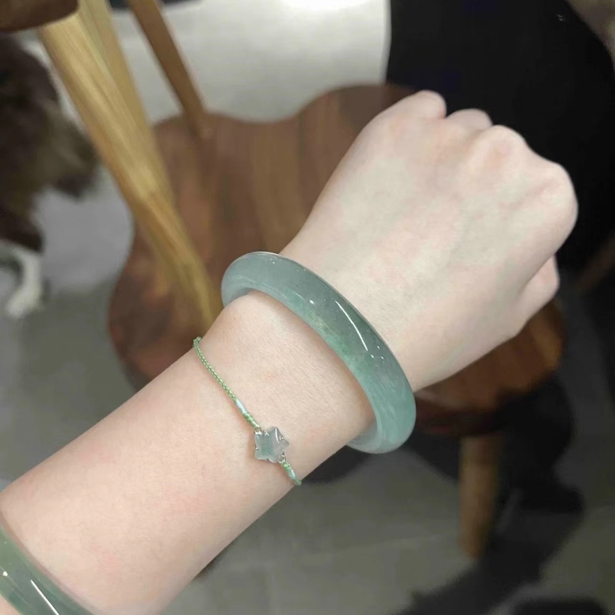 冰种缅甸玛瑙玉髓手镯飘绿正圈玉手镯飘花手镯子透玉石贵妃镯送礼