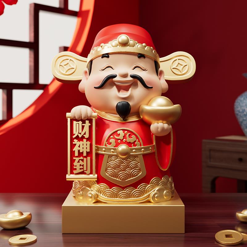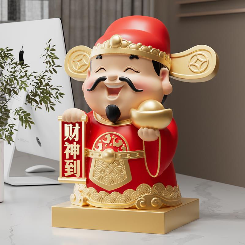 正品国潮室财神爷摆件客厅电视柜店铺面前台办公招财装饰品开业桌