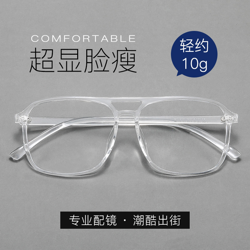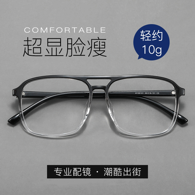 超轻防蓝光眼镜男潮手机电脑护目镜大脸复古双梁眼镜框架可配近视