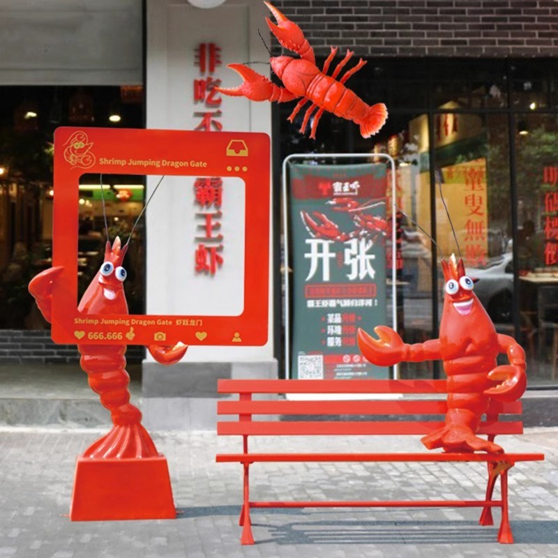 仿真发光小龙虾螃蟹雕塑鱼蛙店餐厅排档挂件灯箱海洋迎宾装饰摆件
