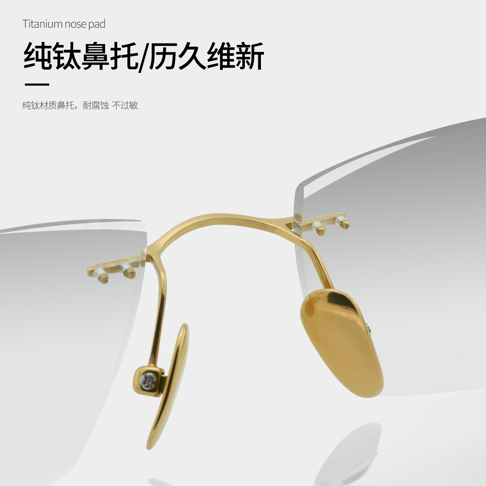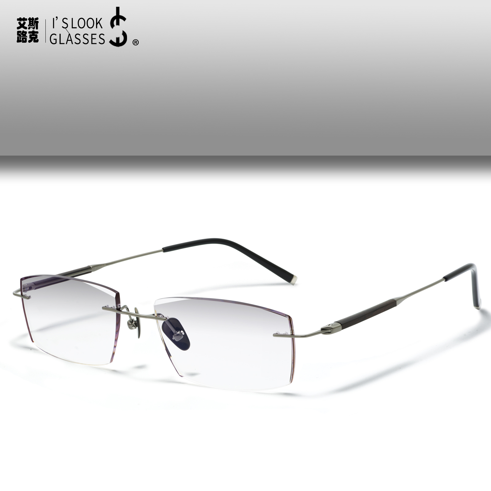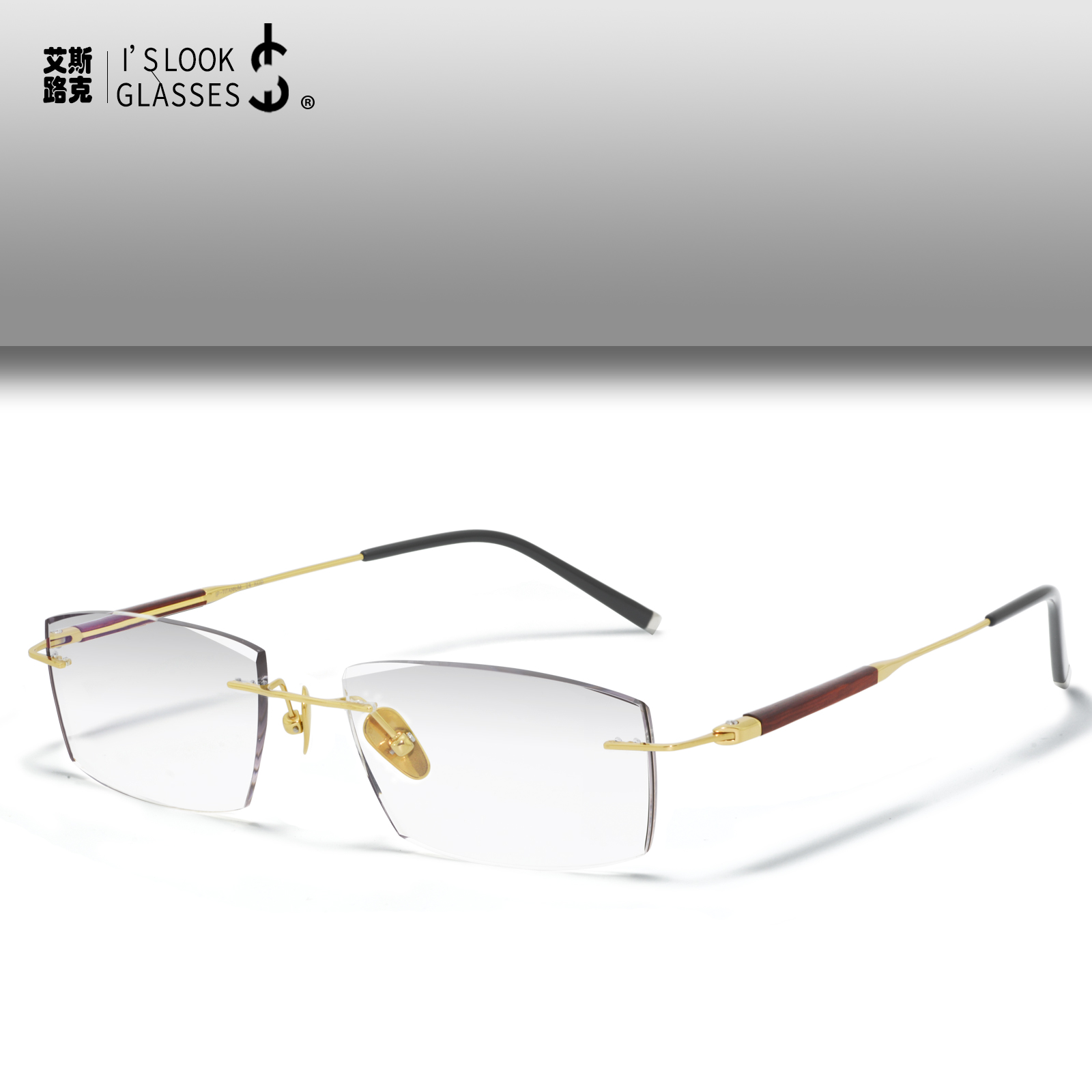 檀木超轻纯钛钻石切边无框眼镜男士商务配度数近视防蓝光眼镜0009
