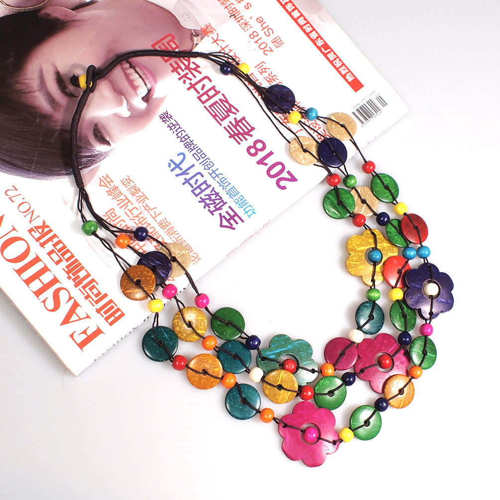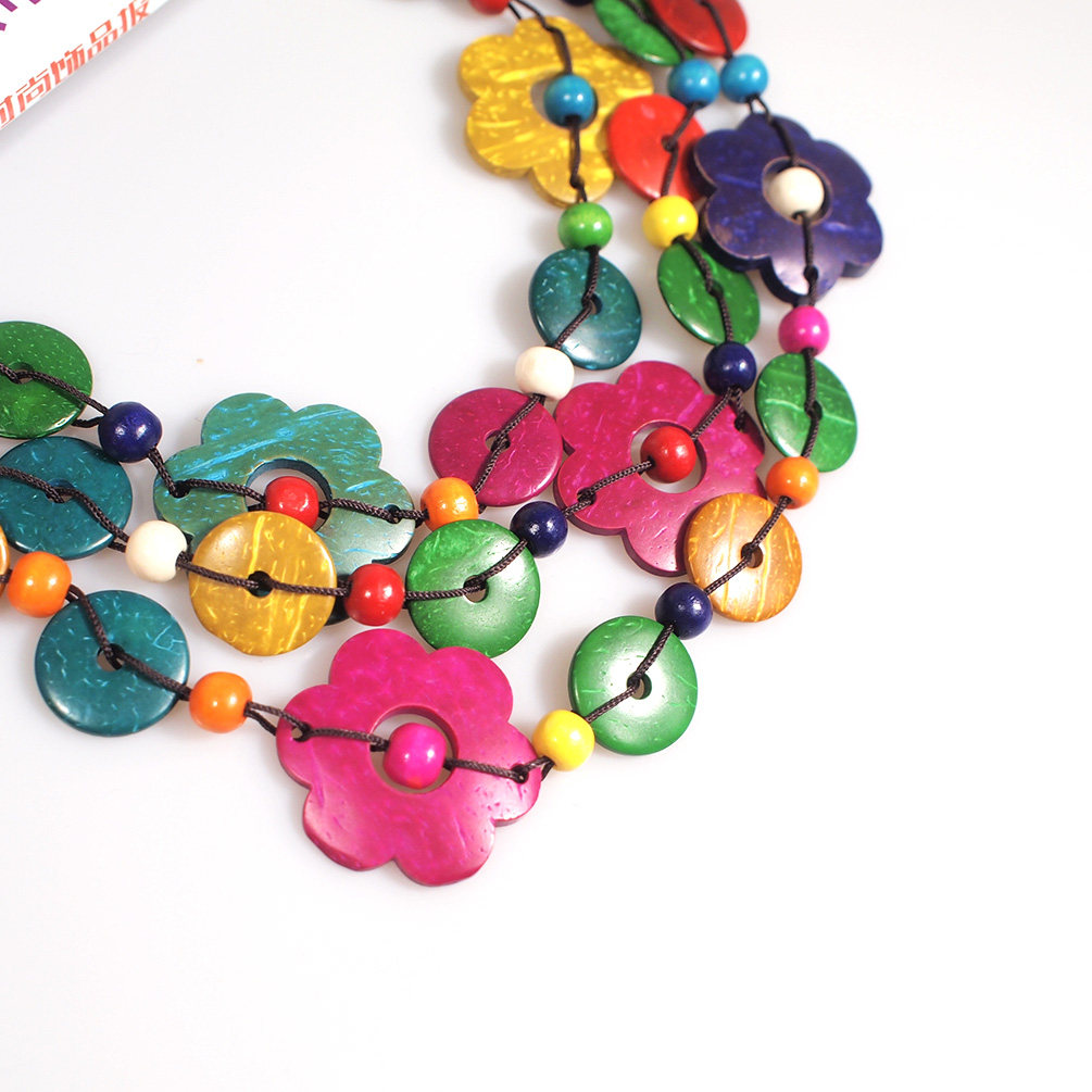 波西米亚彩色椰壳木质手工项链女 民族风时尚多层长款项链配饰