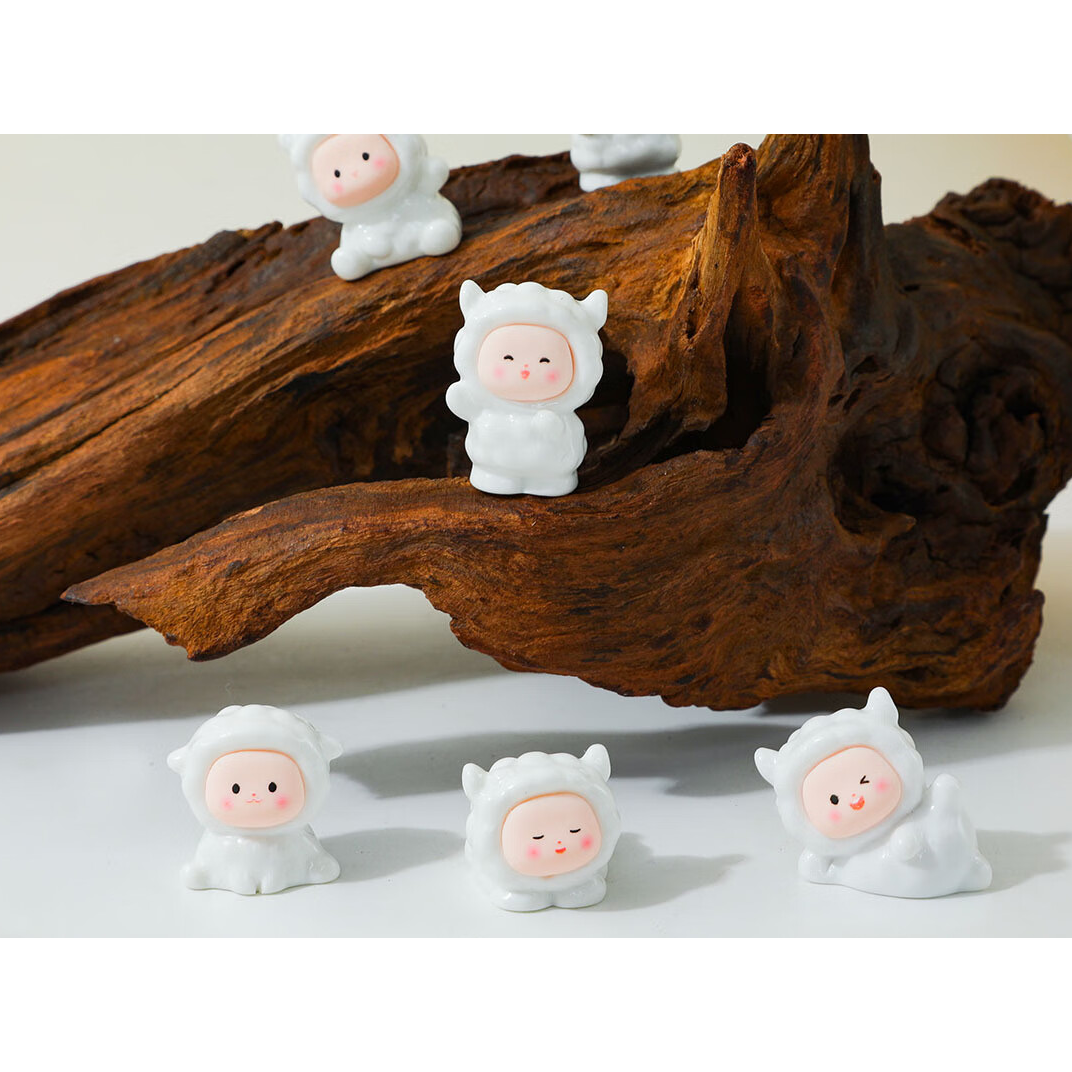 仿真新款微缩白色造型小羊公仔DIY车载动物摆件自制小绵羊挂件