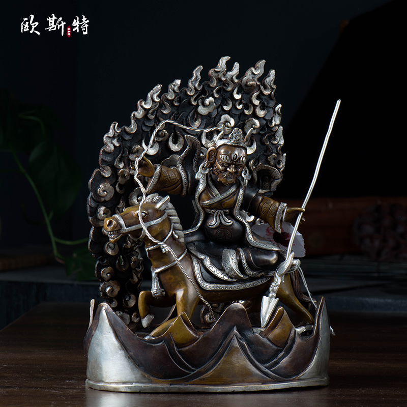 欧斯特 尼泊尔手工 紫铜镀银 7寸资玛手工像 孜玛客厅桌面摆件