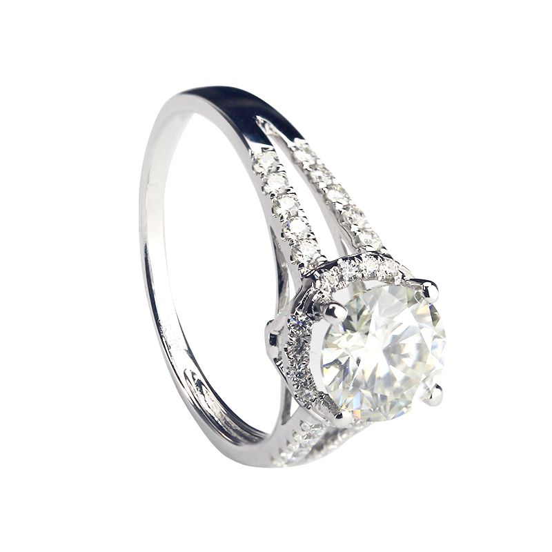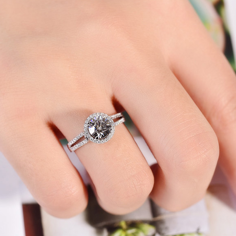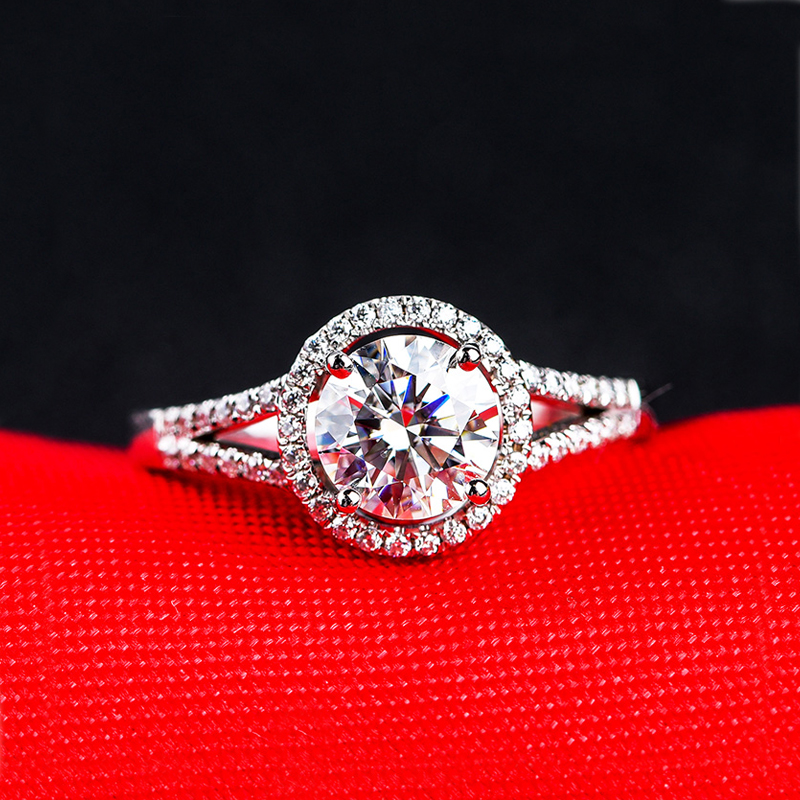 进口莫桑宝石镶嵌钻戒s925银饰双排圆包戒指男女情侣求婚结婚对戒