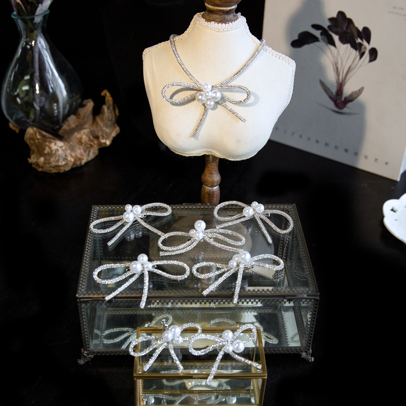 水舞D1161 新款韩式闪钻蝴蝶结新娘项链耳环发饰套装婚纱礼服配饰