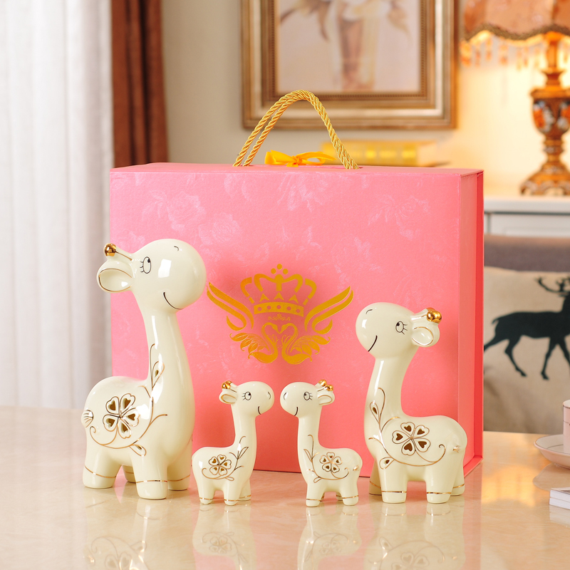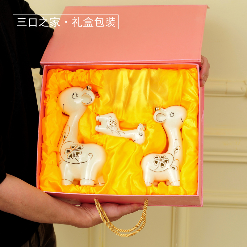 客厅创意陶瓷一家三口摆件一鹿有你家居装饰品结婚礼物送新人一对