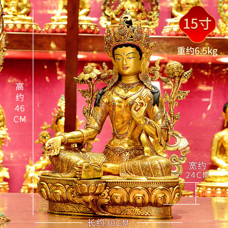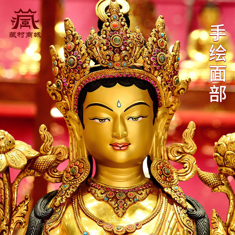 释迦族手工制作《绿度母》室内家用《绿多罗观音》铜像摆件