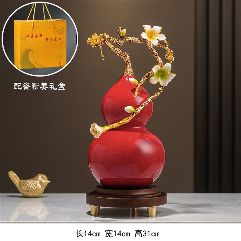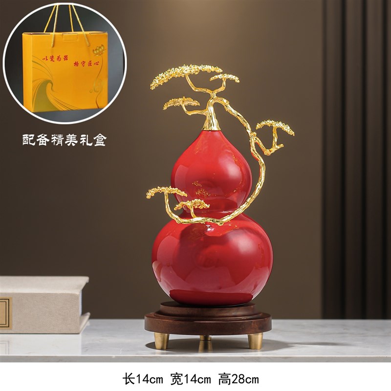 珐琅彩迎客松福禄葫芦摆件招财高档客厅酒柜装饰开V业乔迁新居礼