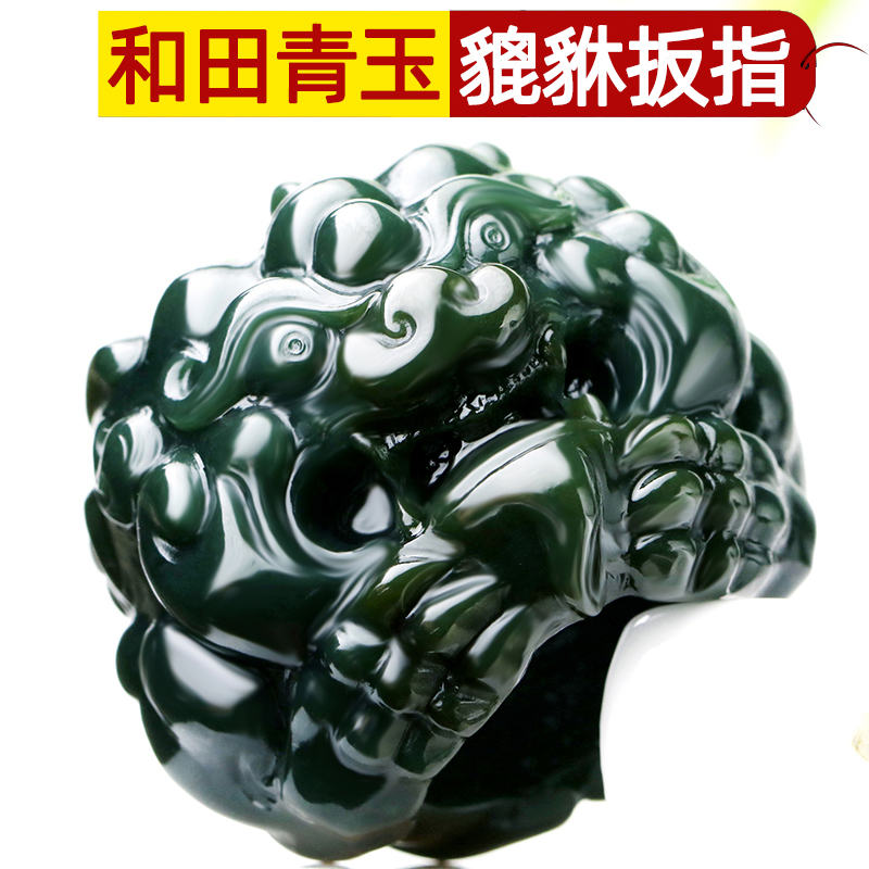新疆和田玉貔貅扳指环天然塔青玉扳指男款玉石貔貅瑞兽大拇指把件