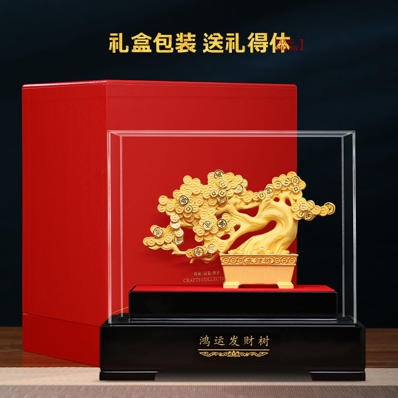 绒沙金鸿运当头黄金发财树摆件招财客厅玄关酒柜高端乔迁开业礼品