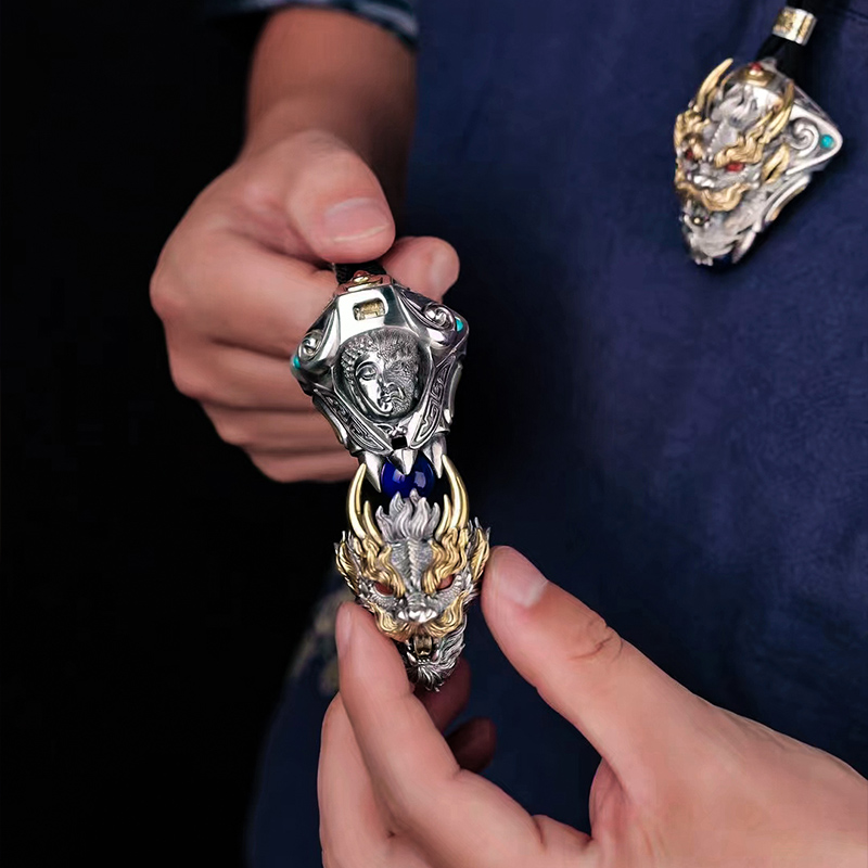 霸气降龙罗汉吊坠纯银男士重工龙头车钥匙挂件本命年高档2024新款