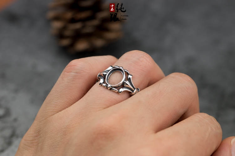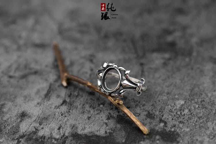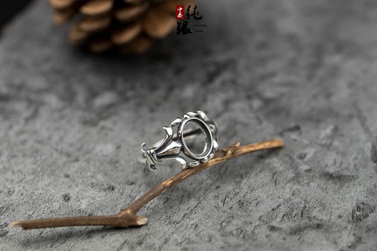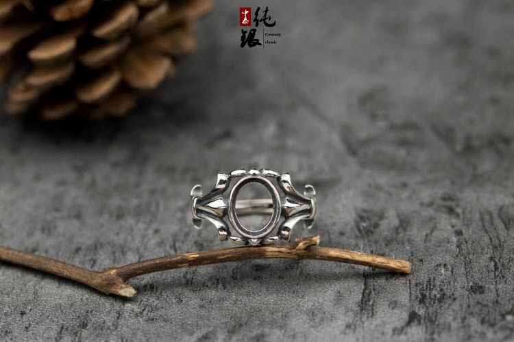 S925纯银戒托未镶嵌包边款戒指空托蜜蜡绿松石女戒指空托7.5*9.5