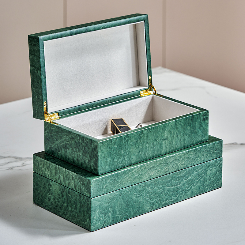新中式复古风墨绿色系收纳盒提盒包样板间衣帽间储物柜装饰盒摆件