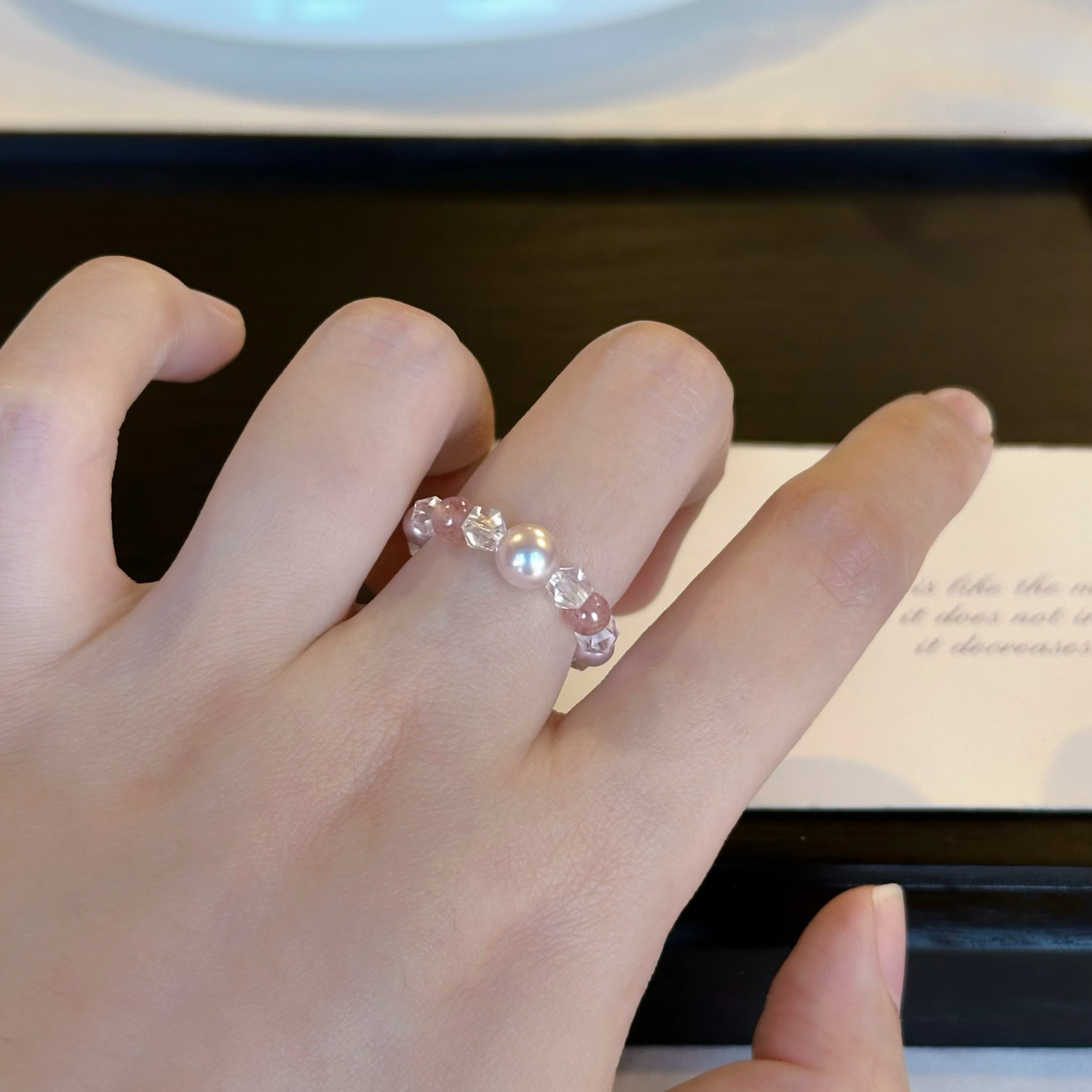 曼塔玫瑰珍珠草莓晶戒指女轻奢高级感日常通勤食指戒小众设计指环