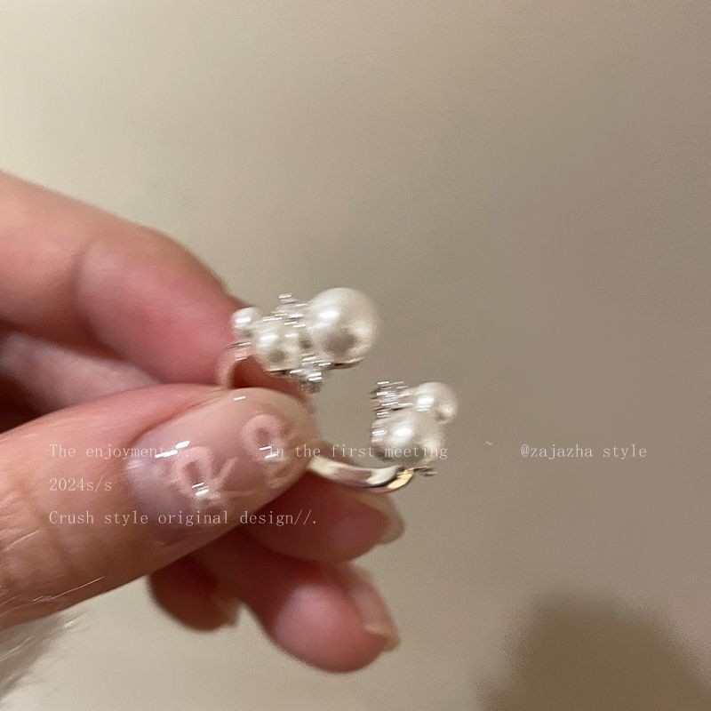 「月光织梦」珍珠锆石开口戒指女款轻奢高级感食指戒小众设计个性