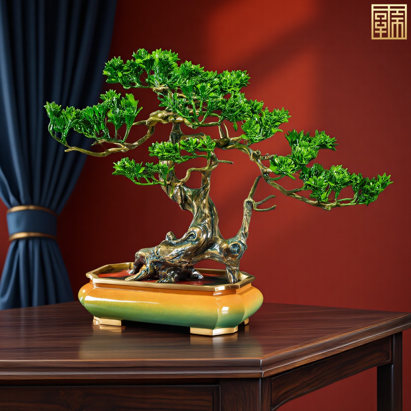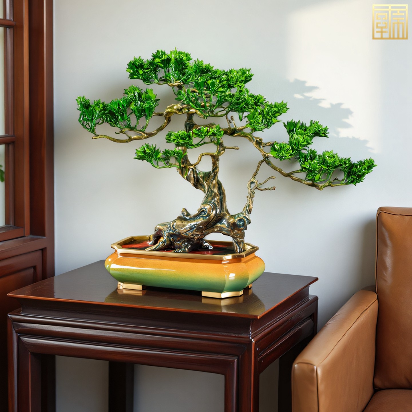 迎客松黄铜摆件客厅高档办公室入户玄关装饰公司搬迁开业乔迁礼物