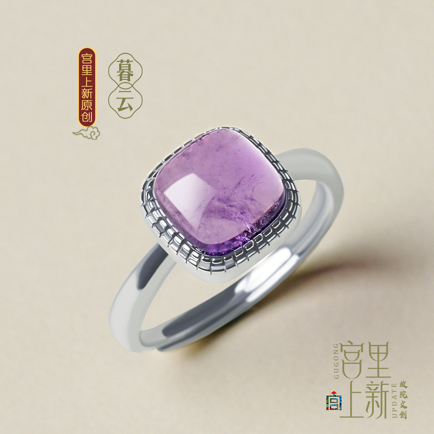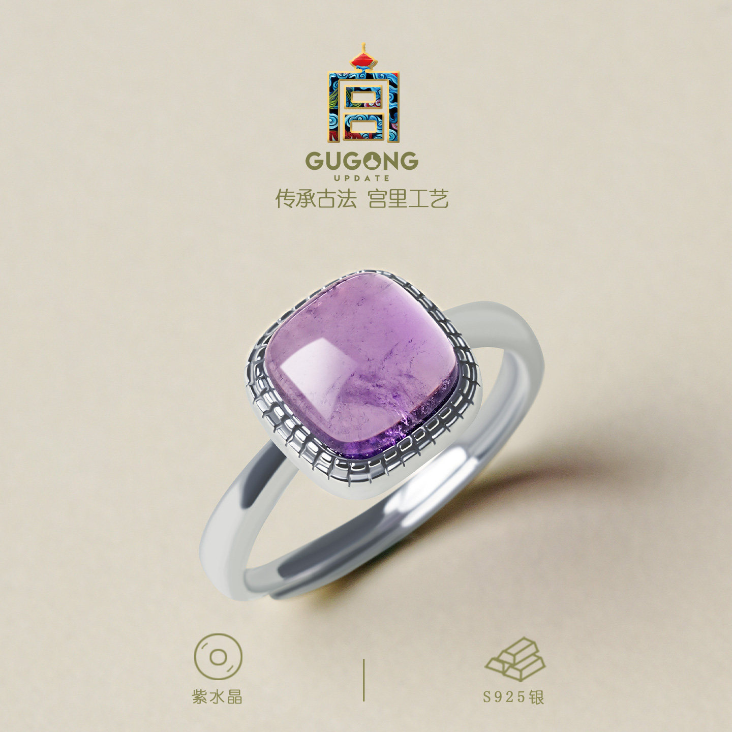 宫里上新紫水晶戒指女纯银天然紫色水晶小方糖指环生日礼物送妈妈